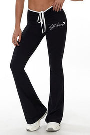 Aura contrast Tie Flared Leggings Black